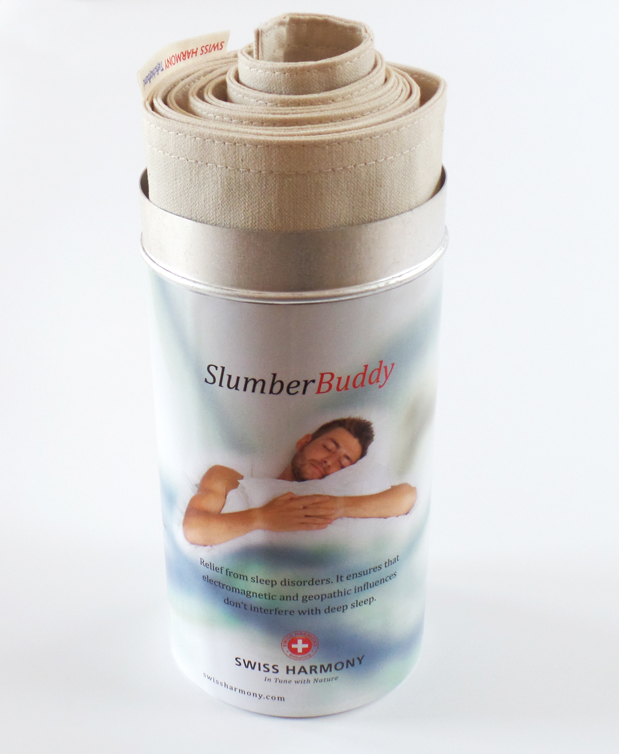 Swiss Harmony’s SlumberBuddy neutralizes these influences, ensuring deep sleep. It is available in three different sizes to accommodate different mattress widths. It is placed on top of the mattress under the bottom sheet to create a harmonic field in the body.